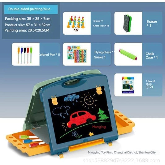 2-in-1 Drawing Board for Kids | Double-Sided Whiteboard & Blackboard | Sketch Pens, Chalk, Duster, Games